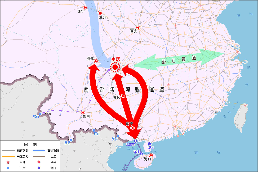 西部陸海新通道位于我們西部地區(qū)腹地,北街絲綢之路經濟帶,南連21世紀海上絲綢之路,協(xié)同銜接長江經濟帶,在區(qū)域協(xié)調發(fā)展格局中具有重要戰(zhàn)略地位。