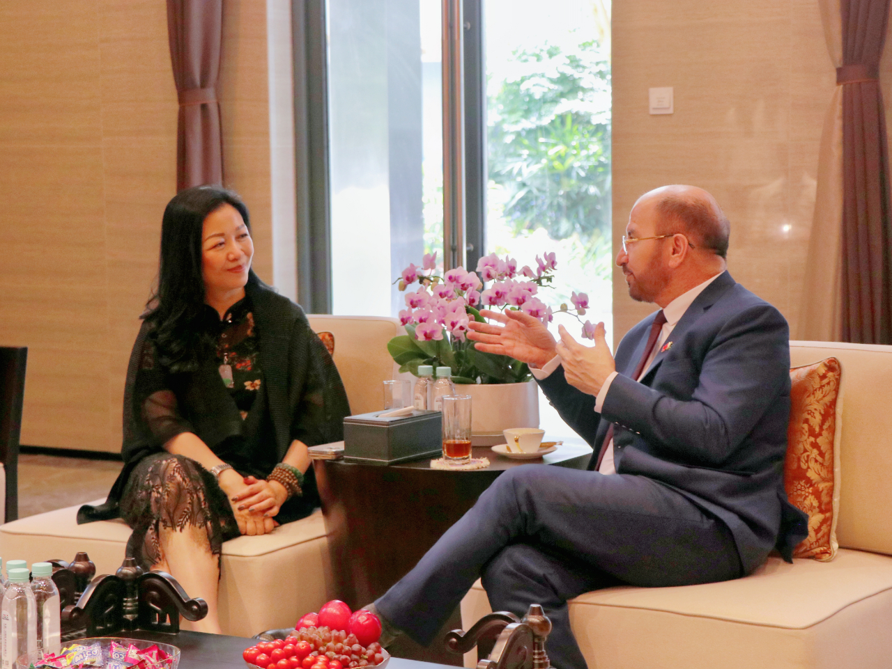 趙海燕董事長(zhǎng)與薩達(dá)爾· 穆罕默德代理總領(lǐng)事在匯聚中心合影