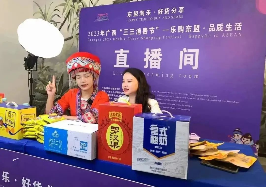 本次活動(dòng)還通過(guò)開(kāi)辟線上分會(huì)場(chǎng)、開(kāi)展“直播帶貨”等新零售模式,線上線下聯(lián)動(dòng),促進(jìn)東盟國(guó)家商品進(jìn)口和廣西產(chǎn)品“出海”。主播在天貓和抖音兩大平臺(tái),云上聯(lián)動(dòng),圍繞廣西以及東盟特色商品開(kāi)展專場(chǎng)直播帶貨活動(dòng),在展銷區(qū)和匯聚中心進(jìn)行“云逛展”,與東盟特色商品經(jīng)銷商、供應(yīng)商互動(dòng)交流,向粉絲觀眾分享品嘗體驗(yàn)與逛展心得,借助新媒體平臺(tái),為東盟特色商品引流,促進(jìn)線上銷售。