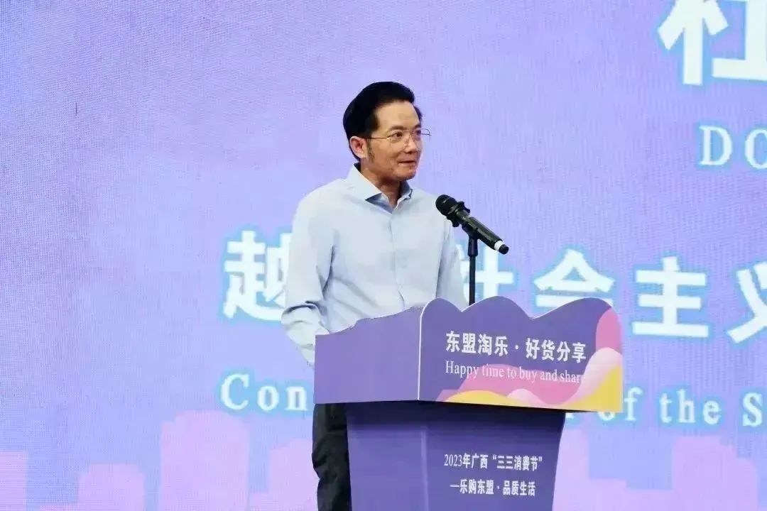 會(huì)上,廣西壯族自治區(qū)商務(wù)廳黨組書(shū)記、廳長(zhǎng)楊春庭表示,消費(fèi)是經(jīng)濟(jì)增長(zhǎng)的第一動(dòng)力,也是人們對(duì)美好生活向往的直接體現(xiàn),廣西“33消費(fèi)節(jié)”作為壯鄉(xiāng)人民,參與度最高、獲得感最強(qiáng)的消費(fèi)盛宴,已成為全國(guó)知名促消費(fèi)品牌。同時(shí),廣西是中國(guó)面向東盟的前沿窗口,與東盟國(guó)家消費(fèi)深度融合、經(jīng)貿(mào)交流源遠(yuǎn)流長(zhǎng),希望以此契機(jī),著力暢通國(guó)民經(jīng)濟(jì)循環(huán),打造更高效率、更加公平、更為溫馨、更加實(shí)惠、更可持續(xù)的消費(fèi)環(huán)境,依托中國(guó)—東盟特色商品匯聚中心等平臺(tái),務(wù)實(shí)推動(dòng)更多的東盟特色商品,經(jīng)廣西行銷全國(guó),共享中國(guó)統(tǒng)一大市場(chǎng)巨大紅利!