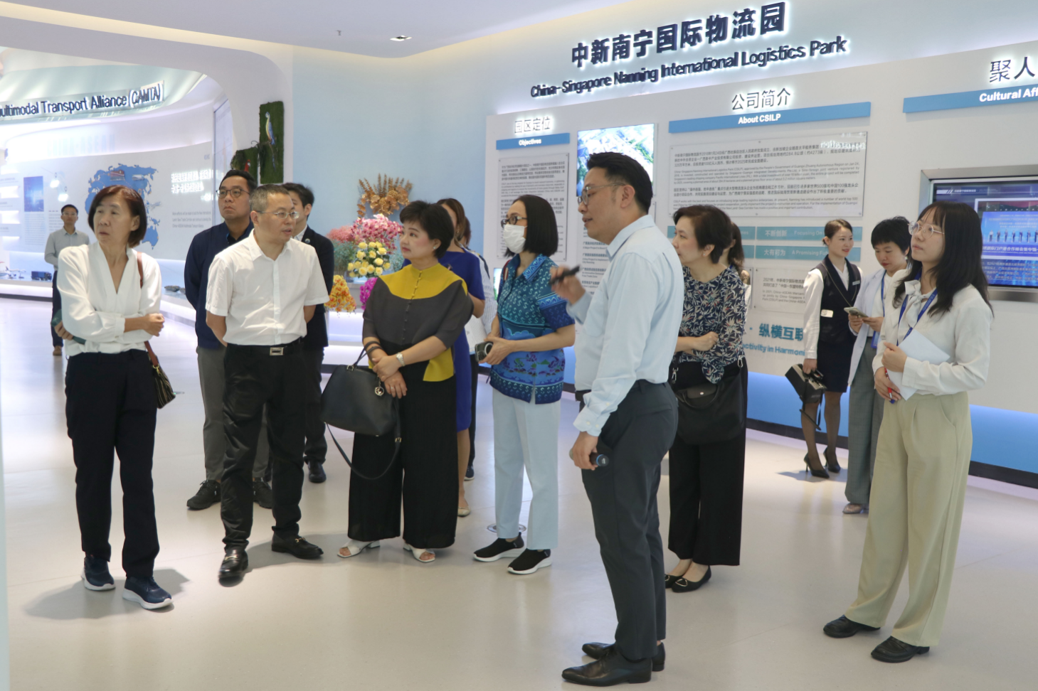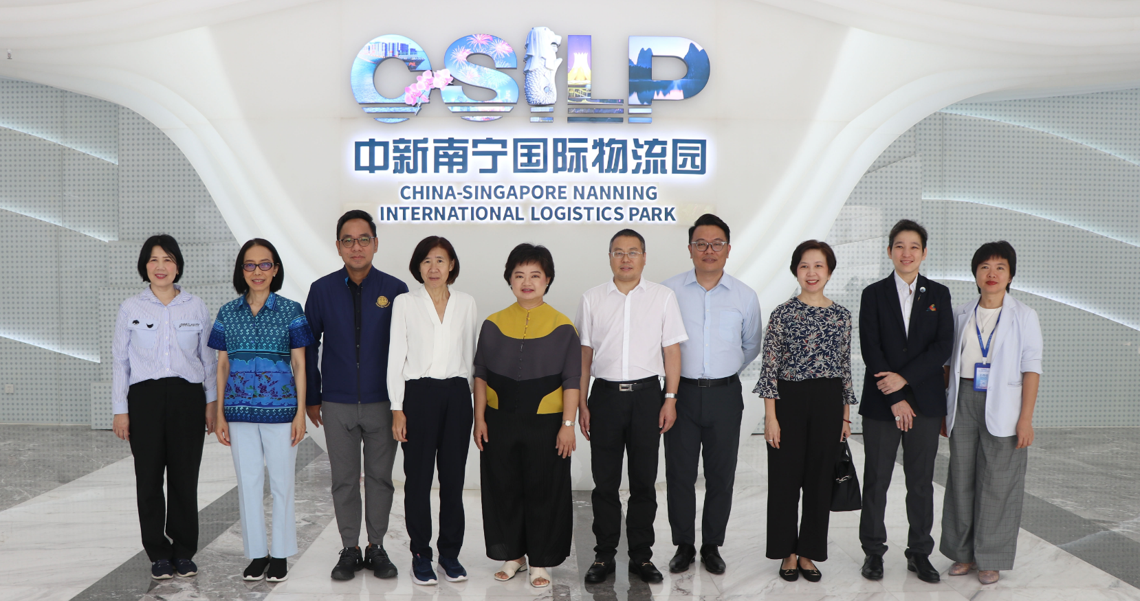 2023年6月30日,泰國商業(yè)部巡視組組長(副司級)素南塔.剛婉古吉女士一行到中新南寧國際物流園(以下簡稱“中新物流園”)、中國—東盟特色商品匯聚中心(以下簡稱“匯聚中心”)考察,就進一步提升中泰兩國在經貿領域的合作與交流展開探討。廣西新中產業(yè)投資有限公司副總經理商紅熱情接待了巡視組一行。