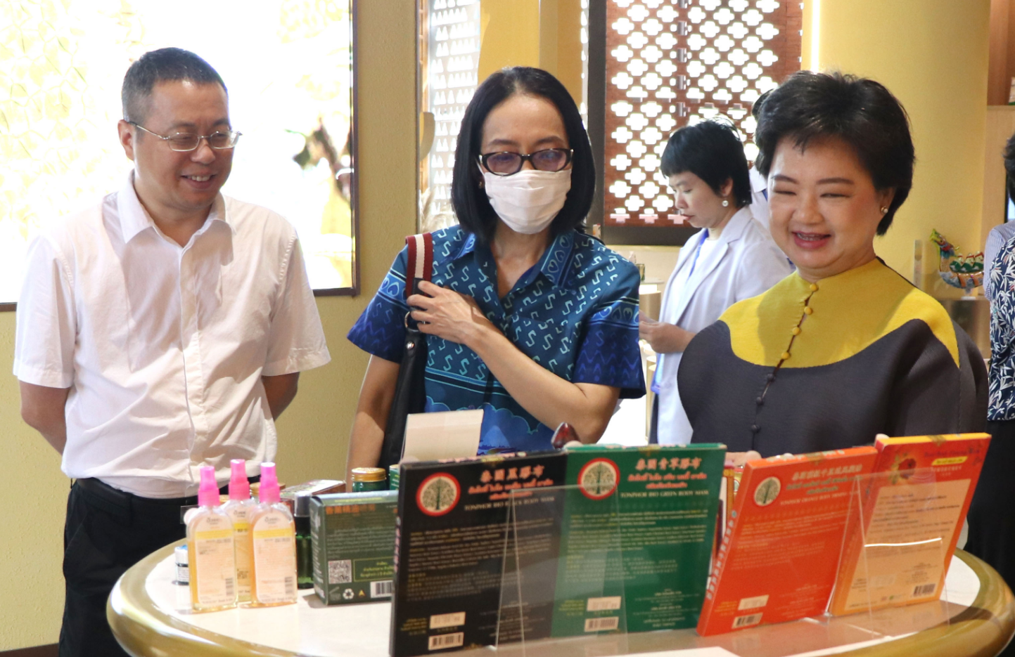 婉娜蓬·戈杜塔等泰國商業(yè)部巡視員、中國—東盟特色商品匯聚中心副總經理盧春梅等陪同考察。