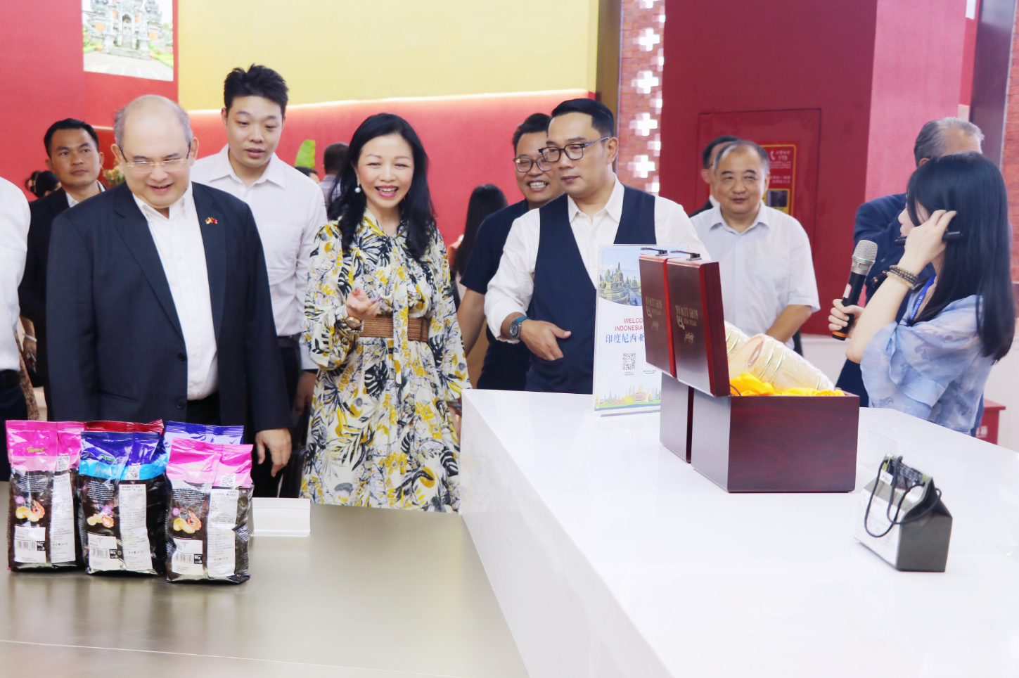 利德萬(wàn)充分認(rèn)可匯聚中心在中國(guó)與東盟國(guó)家經(jīng)貿(mào)往來(lái)中扮演的重要角色,同時(shí)對(duì)于匯聚中心印尼展館充分展示印尼多元文化與特色產(chǎn)品的設(shè)計(jì)理念感到非常欣喜,并對(duì)此給予了九分的高度評(píng)價(jià)。利德萬(wàn)表示這是第一次到訪匯聚中心,他非常認(rèn)同匯聚中心搭建的線上線下經(jīng)貿(mào)往來(lái)一站式平臺(tái),在考察時(shí)就立刻想到將西爪哇省非常有名的咖啡豆入駐匯聚中心,并以此作為切入點(diǎn),與匯聚中心進(jìn)行更多合作,未來(lái)也希望借助匯聚中心平臺(tái)幫助更多印尼的商家和特色產(chǎn)品進(jìn)入中國(guó)市場(chǎng)。他強(qiáng)調(diào),印尼和中國(guó)是志同道合的同路人、好伙伴,西爪哇省愿用好區(qū)域全面經(jīng)濟(jì)伙伴關(guān)系協(xié)定實(shí)施等重大機(jī)遇,進(jìn)一步加強(qiáng)同廣西同匯聚中心商貿(mào)等領(lǐng)域的務(wù)實(shí)合作。