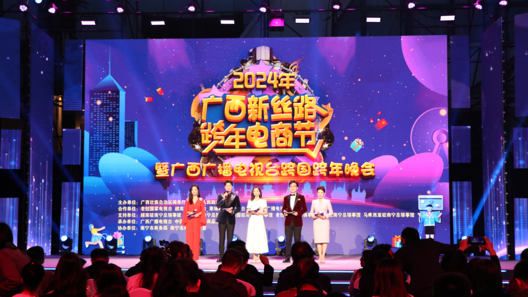網(wǎng)羅八桂優(yōu)品、東盟好物,共赴e場消費盛宴。由廣西壯族自治區(qū)商務(wù)廳聯(lián)合南寧市人民政府,聯(lián)動越南、柬埔寨、泰國、老撾、緬甸、馬來西亞駐南寧總領(lǐng)事館共同舉辦的2024年廣西新絲路跨年電商節(jié)暨廣西廣播電視臺跨國跨年晚會在國內(nèi)主會場廣西南寧市中國—東盟特色商品匯聚中心(以下簡稱“匯聚中心”)、海外分會場老撾萬象國家文化宮同步精彩啟幕。