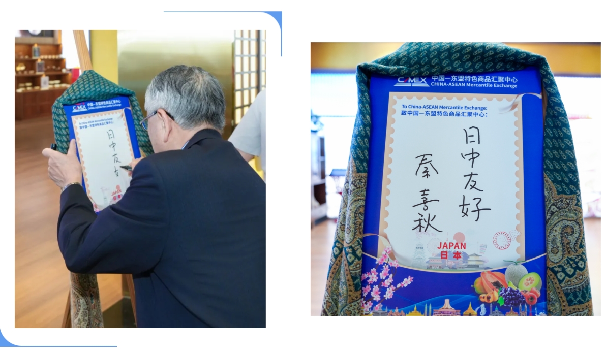 隨即,秦喜秋副會長在日本館書寫下“日中友好”的寄語,并祝愿匯聚中心發(fā)展越來越好!他表示,本次參觀考察收獲滿滿,但行程較為匆忙,仍覺意猶未盡,期待未來有更多機會到匯聚中心作進一步溝通交流。