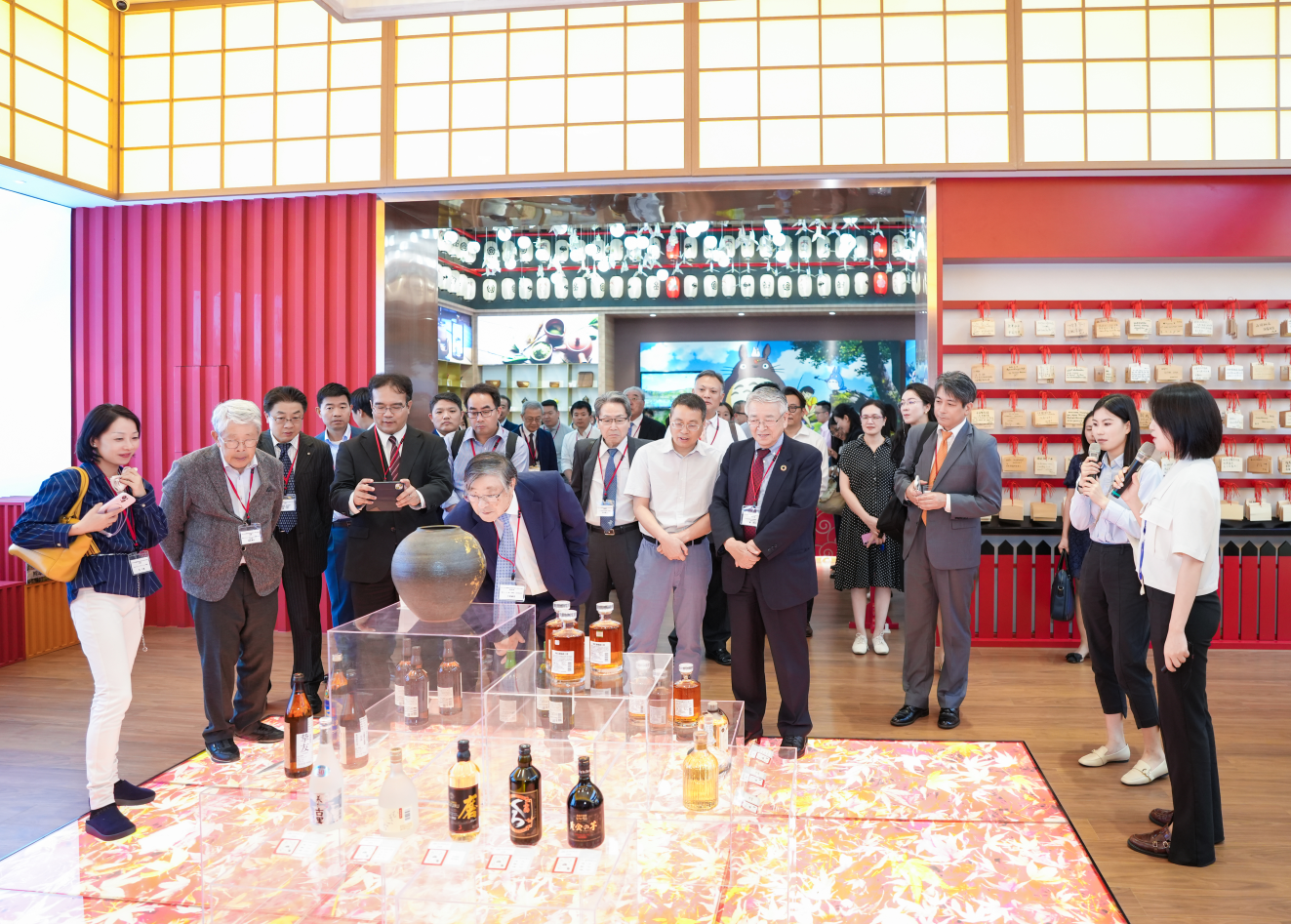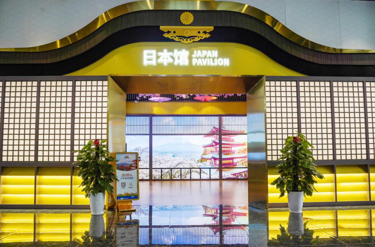 來到日本館,濃郁的日式風(fēng)情撲面而來,代表團紛紛駐足拍照留念。作為匯聚中心獨具特色的四季主題館,日本館以“季節(jié)流轉(zhuǎn)”為設(shè)計主線,巧妙融合了日本傳統(tǒng)建筑美學(xué)與現(xiàn)代展示技術(shù),加之結(jié)合浮世繪的意境、茶道的禪意、花道的雅致,打造出移步換景的沉浸式體驗空間,讓訪客在有限的空間內(nèi)領(lǐng)略到日本文化的精髓。