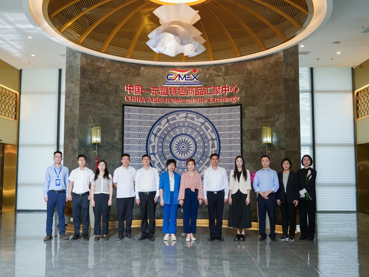 2025年4月16日,重慶市貿促會會長鄧琳一行在廣西貿促會副會長劉樹義的陪同下到中國—東盟特色商品匯聚中心(簡稱“匯聚中心”)參觀調研并進行座談交流。中國—東盟特色商品匯聚中心副總經(jīng)理盧春梅熱情接待了調研組。