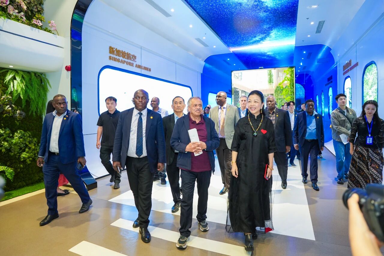 隨即,駐華使節(jié)代表團前往匯聚中心,走進(jìn)多個主題展館,切身感受項目“全流程服務(wù)、全鏈條賦能、全品類覆蓋”的創(chuàng)新運營模式,并對展館精美的設(shè)計和濃厚的東盟文化元素贊不絕口。匯聚中心通過線上數(shù)字化平臺與線下展館沉浸式商貿(mào)體驗的深度融合,以“物”引“流”、以“物”促“流”,搭建了中國與東盟、RCEP其他區(qū)域國家乃至“一帶一路”沿線重要國家經(jīng)貿(mào)往來線上線下一站式首選平臺。憑借獨特的沉浸式多國文化場景與完善的一站式配套服務(wù),匯聚中心吸引了越來越多的各國商家入駐,在促進(jìn)中國與東盟的經(jīng)貿(mào)合作與文化交流上發(fā)揮了積極作用。