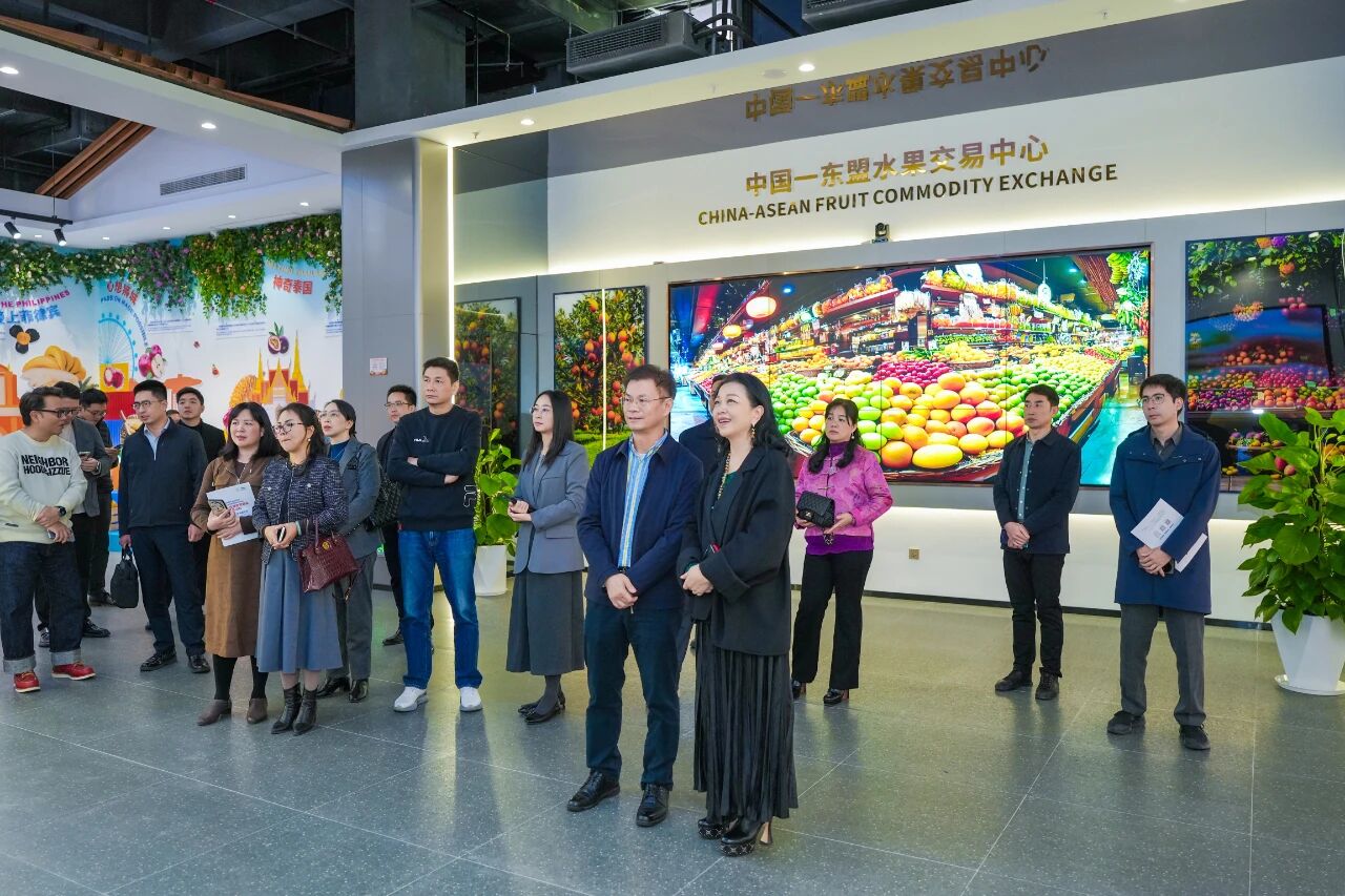 代表處一行還參觀了水果交易中心展廳,深入了解中國與東盟水果貿(mào)易的發(fā)展現(xiàn)狀,對水果交易中心通過多元化的形式既充分呈現(xiàn)了廣西作為中國水果第一大省區(qū)獨特優(yōu)勢,又生動展現(xiàn)了中國與東盟經(jīng)貿(mào)合作(尤其是水果產(chǎn)業(yè))廣闊前景的做法表示了認(rèn)可。他們希望水果交易中心能早日投入運(yùn)營,為消費者提供更加新鮮、實惠的水果選擇。
