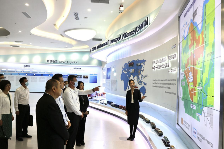 廣西貿促會、南寧海關一行參觀中新物流園展廳