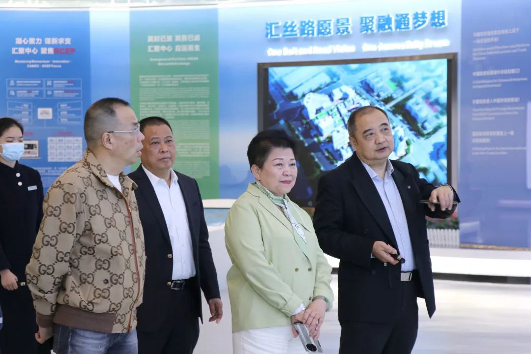 王琳達(dá)會(huì)長介紹,廣西是全國重點(diǎn)僑鄉(xiāng),有700多萬桂籍僑胞廣泛分布在以東盟為主的“一帶一路”國家和地區(qū),他們懷有愛國愛鄉(xiāng)的深厚感情,是參與“一帶一路”和廣西經(jīng)濟(jì)社會(huì)建設(shè)的重要力量。廣西僑商會(huì)自成立以來,廣泛凝聚僑智、發(fā)揮僑力,在促進(jìn)中外友好等方面發(fā)揮了積極的作用。她表示,通過實(shí)地考察與交流,對(duì)中新物流園與匯聚中心的整體規(guī)劃、項(xiàng)目理念、運(yùn)營方式等有了更深的了解。強(qiáng)調(diào)匯聚中心有效搭建了中國與東盟經(jīng)貿(mào)往來與文化交流的平臺(tái),為包括僑商、僑企在內(nèi)的廣大商家到桂投資發(fā)展提供了便利。未來雙方要加強(qiáng)溝通對(duì)接,發(fā)揮各自優(yōu)勢,整合各類資源,開展全方位、多層次合作,攜手助推與東盟國家的經(jīng)貿(mào)融合及快速發(fā)展。