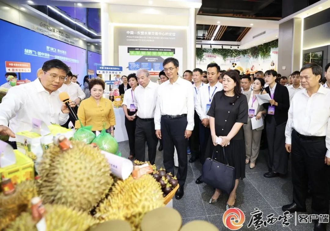 6月18日,“東盟水果 匯聚廣西 讓暢購RCEP更便利更美好——購在中國·廣西站”活動在中國—東盟特色商品匯聚中心啟動。自治區(qū)黨委書記、自治區(qū)人大常委會主任陳剛出席活動并致辭。廣西云-廣西日報記者 鄧華 攝